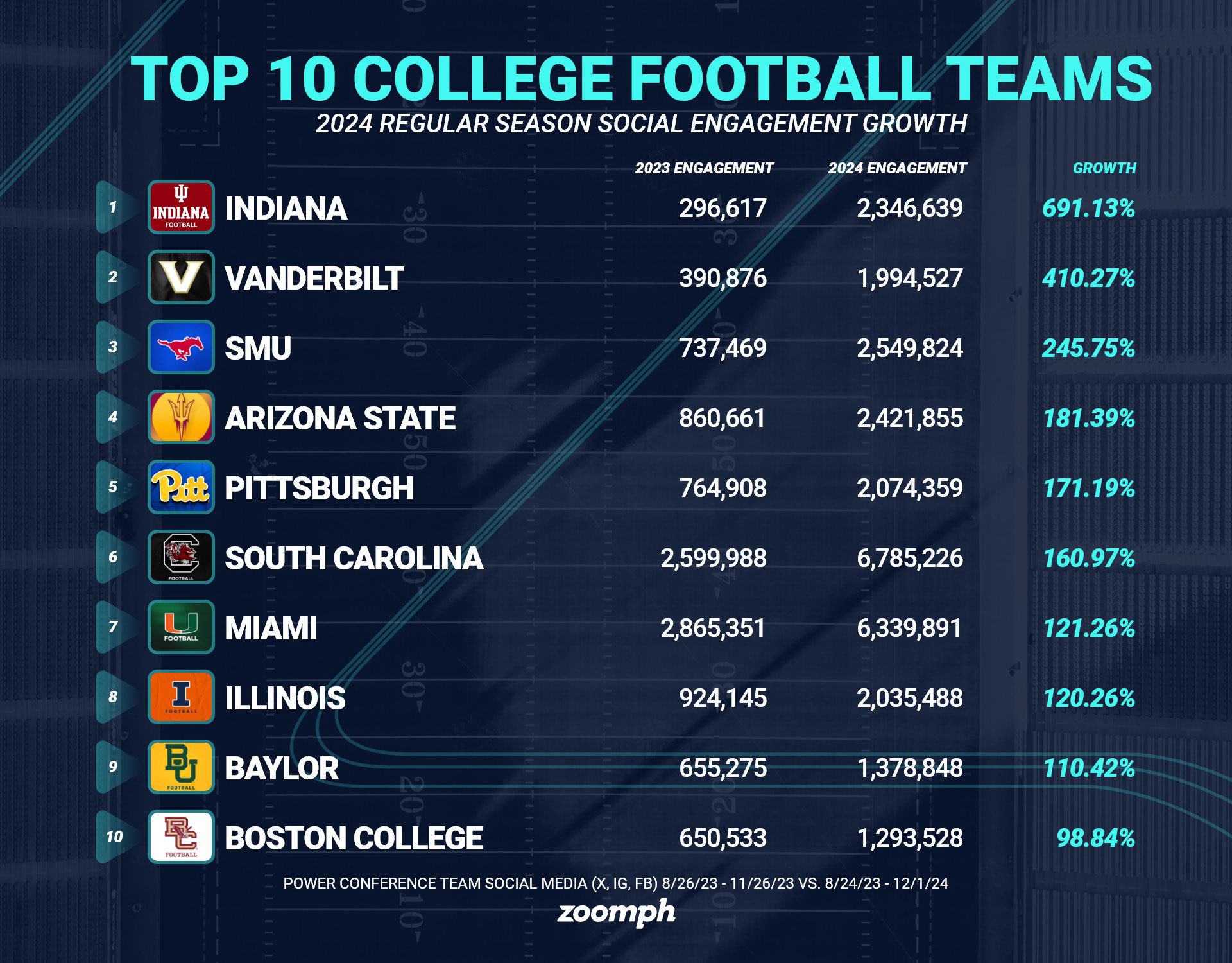 Throughout my career, I've played a significant role in shaping the social media publishing and content strategies of multiple major universities and brands. At each, we've experienced tangible results and sizable growth. In addition to the statistics below, take a look at some performance reports I've put together.